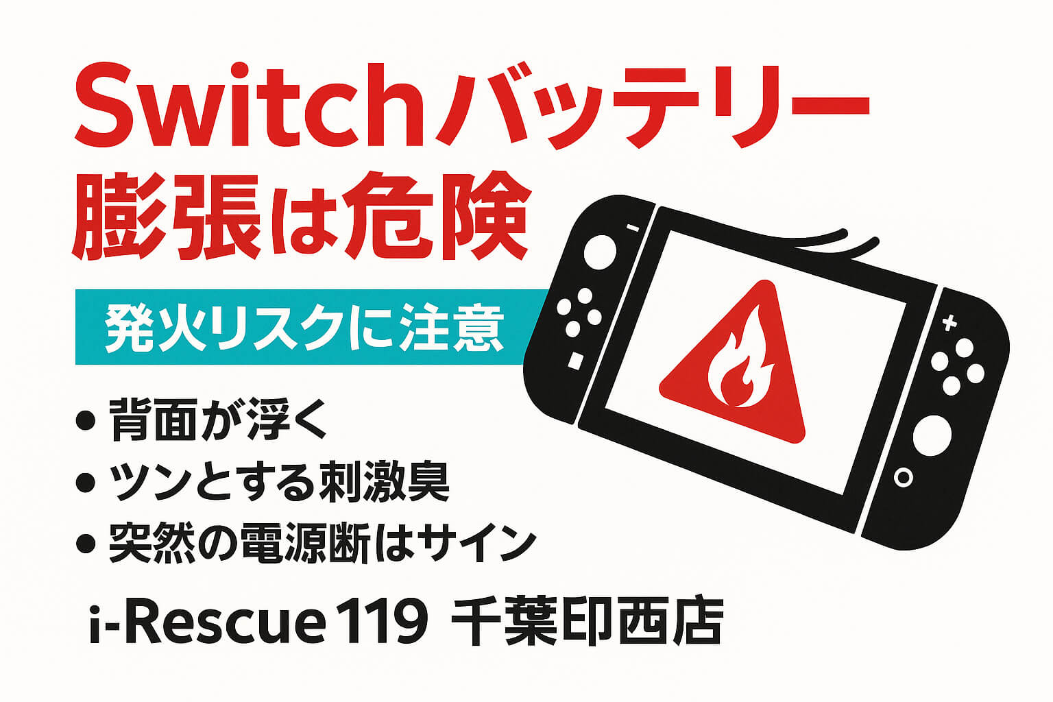 Switchのバッテリー膨張は発火の前兆|実例写真で危険サインを解説【千葉・印西 i-Rescue119】 コメントはまだありません 安全アラート Switchバッテリー膨張は“今” 見逃せない。— 実例でわかる発火リスク ここ数日、全国でモバイルバッテリーの発火事故が相次いでいます。 (参考: 『モバイルバッテリーが燃えている――走行中の成田エクスプ Read More